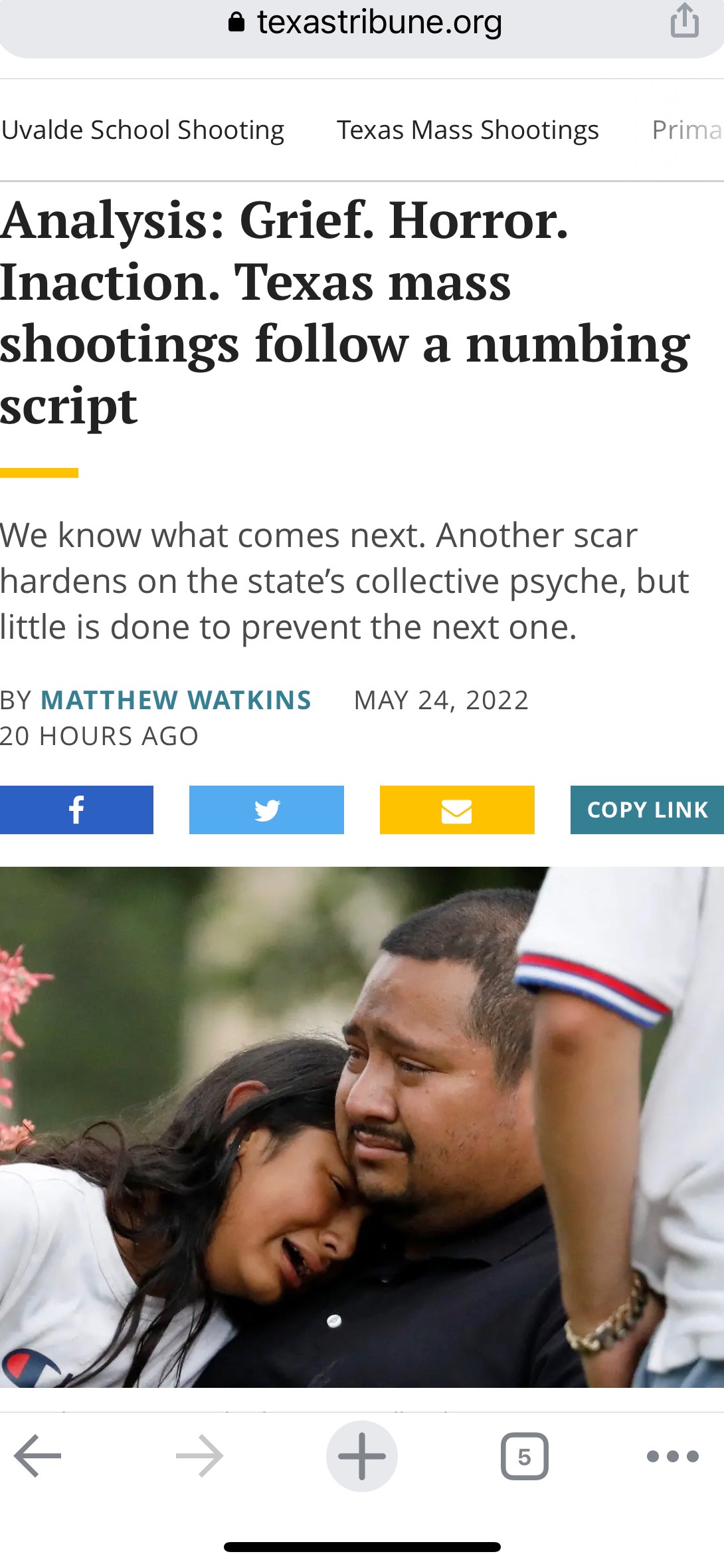 Texas Mass School Shooting Posted byJ ReedMay 25, 2022May 25, 2022Posted inblack lives matter, Criminal Justice Reform, News and True Crime, political, politics, poltics, Racsim, relationships, self care, Self Help JewelsTags:black lives matter, GOP, gun control, mass shooting, overcoming, poltical, Republicans, Robb, Robb Elementary, Robb Elementary School shooting, school shooting, texas, True Story, Walmart, Walmart shooting Texas Mass School Shooting Discover more from The Reeders Block Subscribe to get the latest posts sent to your email. Type your email… Subscribe Share this: Click to share on X (Opens in new window) X Click to share on Facebook (Opens in new window) Facebook Click to share on LinkedIn (Opens in new window) LinkedIn Click to share on Reddit (Opens in new window) Reddit Click to share on Tumblr (Opens in new window) Tumblr Click to share on Pinterest (Opens in new window) Pinterest Click to share on WhatsApp (Opens in new window) WhatsApp Like Loading... Related Published by J Reed J Reed is a Chicago-based fiction writer. When he isn't writing, he's making a pretense of writing. View more posts