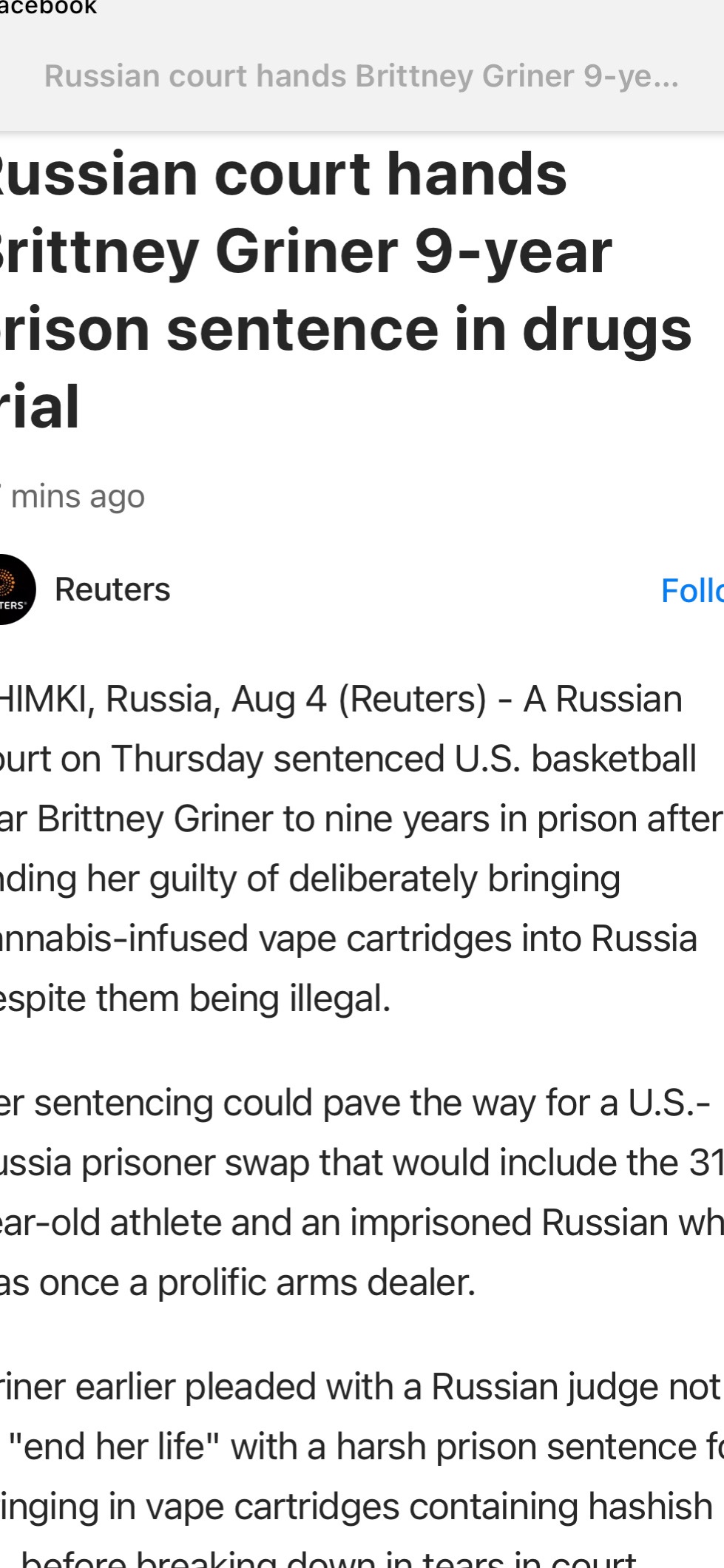 Basketball Player Brittney Griner Sentenced to 9 Years