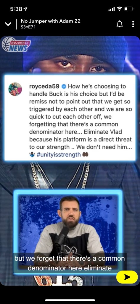Moreover, Vlad has no moral compass beyond dollar signs. The more beef he starts, the more clicks he gets. His show is nothing more than a pre-fight club. It is where rappers go to ruin their careers and be made a puppet of for Vlad’s gain. He is untrustworthy, greedy and selfish.