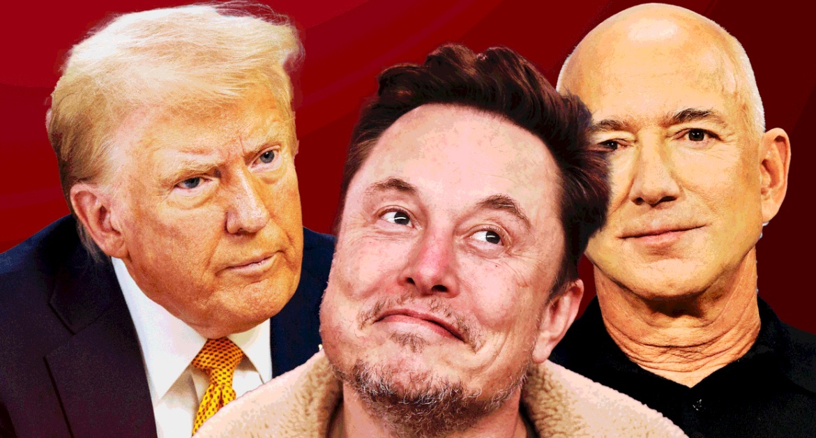 From left to right: President-Elect Donald Trump, Tech Billionaire Elon Musk and Billionaire Amazon Owner Jeff Bezos. Photo credit: Illustration by Eric Faison/The Daily Beast/Getty Images