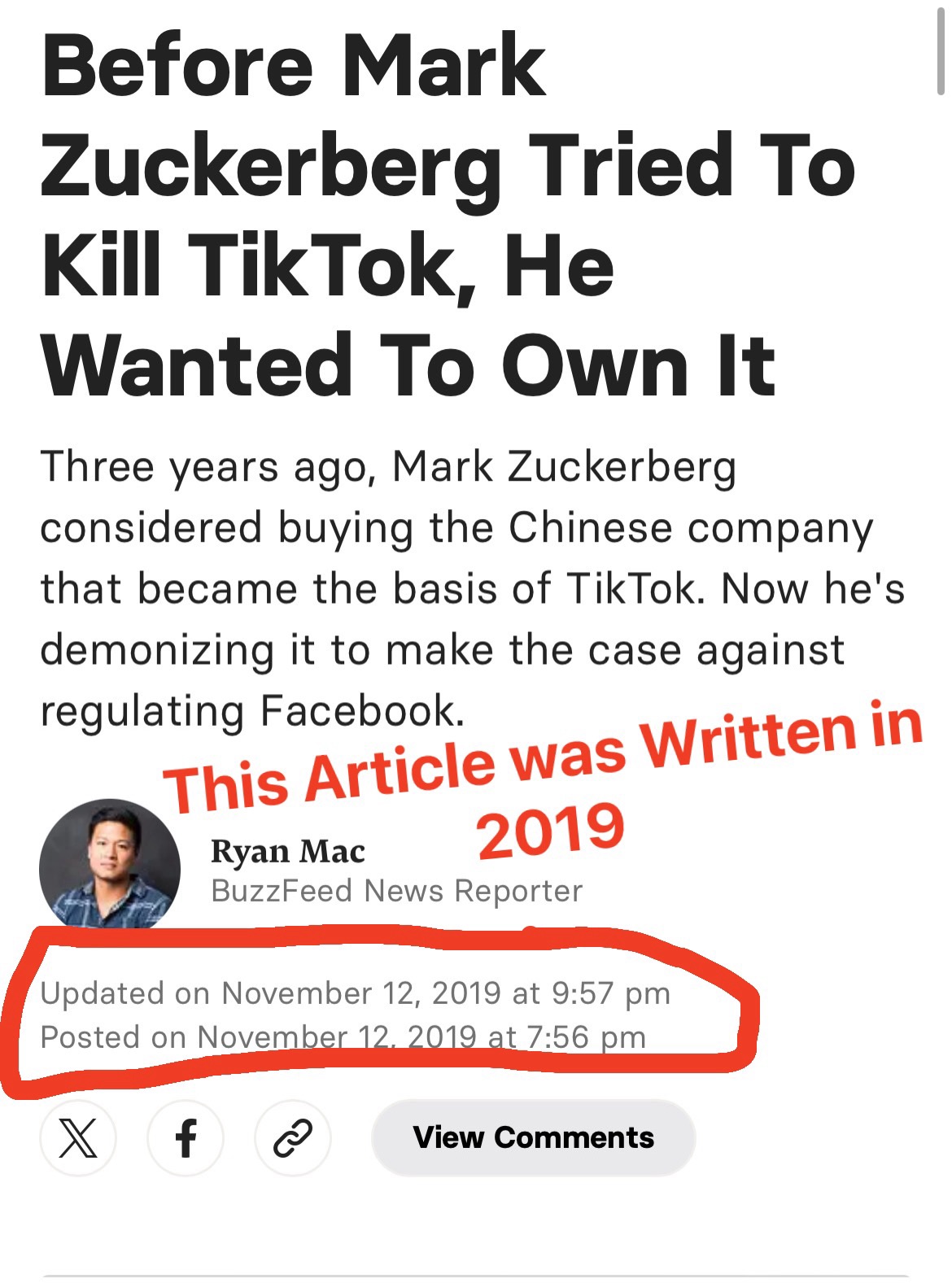Some will say that Donald Trump originally suggested banning TikTok in 2020, but the article “Before Zuckerberg Tried to Kill TikTok, He Wanted to Own It”, written in 2019 by news reporter Ryan Mac, will tell you differently. As a note, this article was written in 2019 about Zuckerberg’s 2016 hostile actions against TikTok. This article that suggests Mark Zuckerberg wanted to kill TikTok or own it was written over five years ago. When Congress threatened the ban of TikTok recently, they gave the company two options: Shut down operations in America or sell to an American owner. Oligarch Elon Musk’s name was thrown around as a potential buyer, but had the company sold, seeing it rebranded as a Meta company wouldn’t have been too much of a shock.