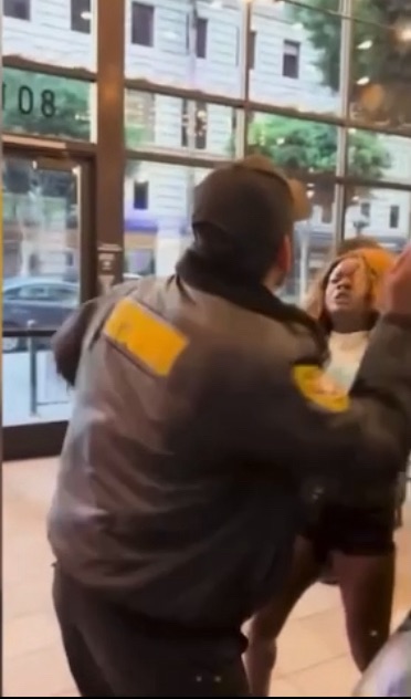 According to BlackNews.com, Alejandro Sanchez, who recorded the incident, said, “The security guard was telling her to leave, and she didn’t want to because she was ordering food. Then he just went off, and she started going crazy.”