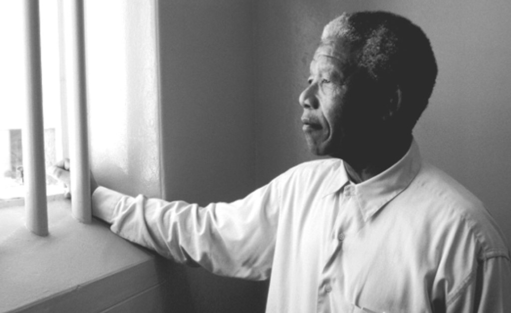 Nelson Mandela peering out a prison window. Photo from PrisonPolicy.org.