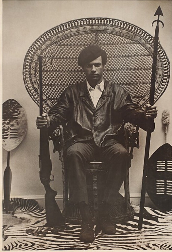 Iconic photo of Black Panthers cofounder Huey P. Newton.