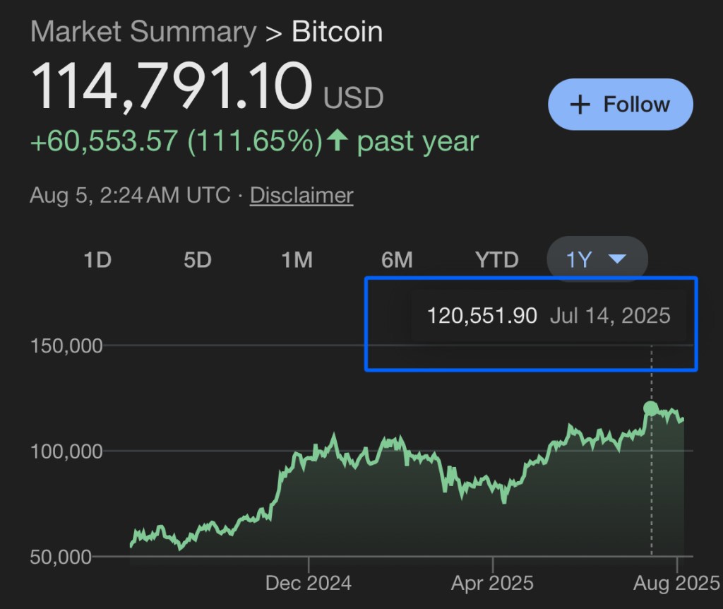 Bitcoin traded at over $120,000 a coin in July of this year, as shown in the below screenshot. It’s now down to $114,000 a coin. Every investor with an ounce of experience is buying now. Trend investors — people investing just because they heard others make money doing it — invested when they saw Bitcoin reach its peak. Now, they’re sore and complaining about “losing money on Bitcoin” because they sold when it started to slip. They were expecting an instant, extraordinary profit and for Bitcoin to not ever slip in price. It doesn’t work that way.