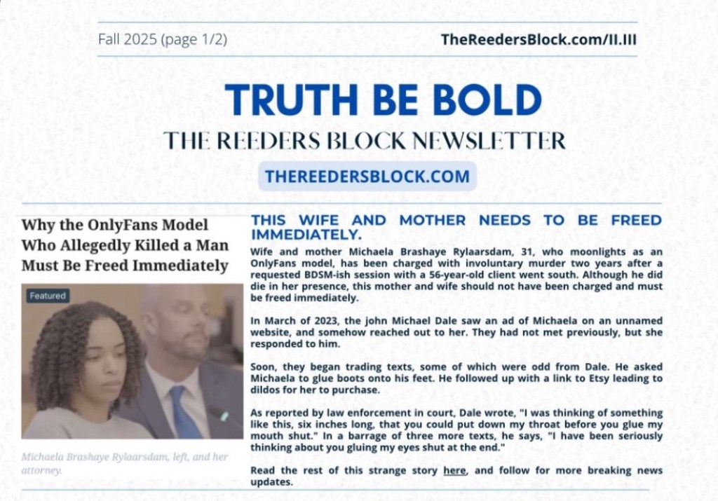 OTHER NEWS: DOWNLOAD YOUR FREE TRUTH BE BOLD NEWSLETTER HERE covering the OnlyFans model accused of killing a john.