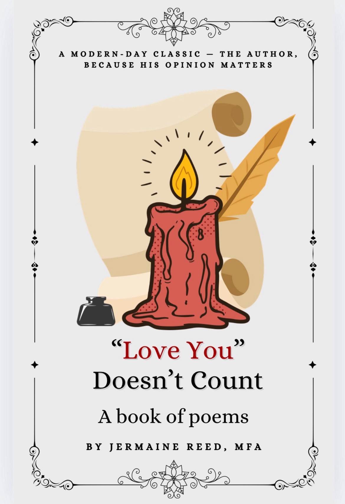 Cover of Jermaine’s upcoming collection of poetry “Love you” Doesn’t Count