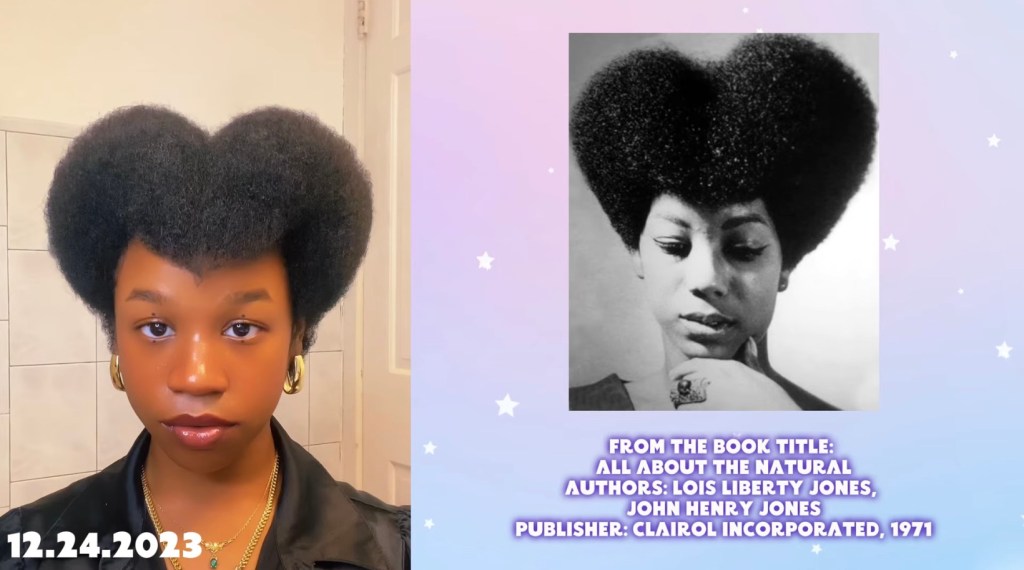In 2023, she posted a video sculpting her natural hair into a classic style, and it went viral. The heart-shaped hairstyle was fashioned after one she showed in a photo from the 1970s. As it had way back then, it caught the curious eye of anyone who saw it. This huge response inspired Solar to learn the history of the phenomenon.